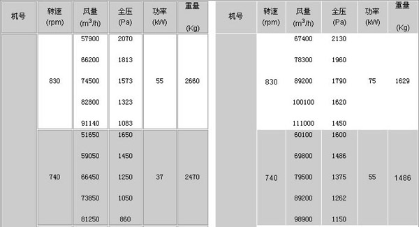 機號:6#-12# 風量:4420-48800m3/h 風壓:317-2118pa